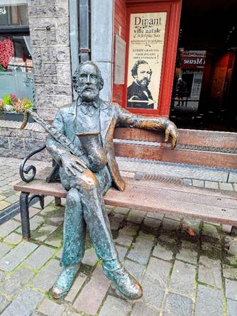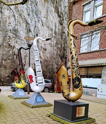 Après avoir longé la Meuse, vous entrez dans la rue Adolphe Sax. Ce dernier vous attend au pas de la porte de la maison qui lui est dédiée…une visite incontournable.