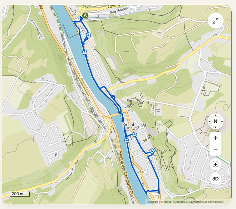 Ensuite retour sur les quais de Meuse pour retourner en ligne droite jusqu’au point de départ à l’abbaye de Leffe.